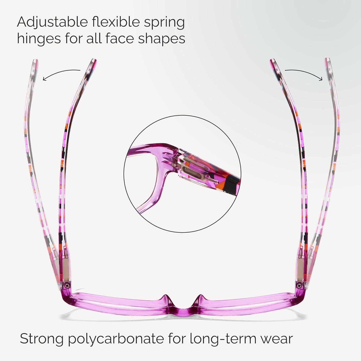 READERS FOR WOMEN - Spring Hinge Design: These eyeglasses with Humanized Ergonomic Design and pattern print lightweight frame to fit any face shape, and eyeglasses won't slip off when worn for a long time, these cute reader glasses will be your great choice