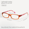• READERS FOR WOMEN - Spring Hinge Design: These eyeglasses with Humanized Ergonomic Design and pattern print lightweight frame to fit any face shape, and eyeglasses won't slip off when worn for a long time, these cute reader glasses will be your great choice